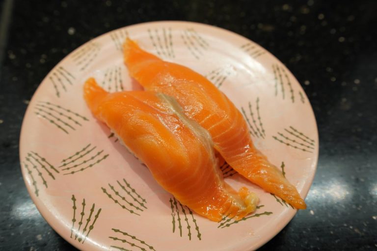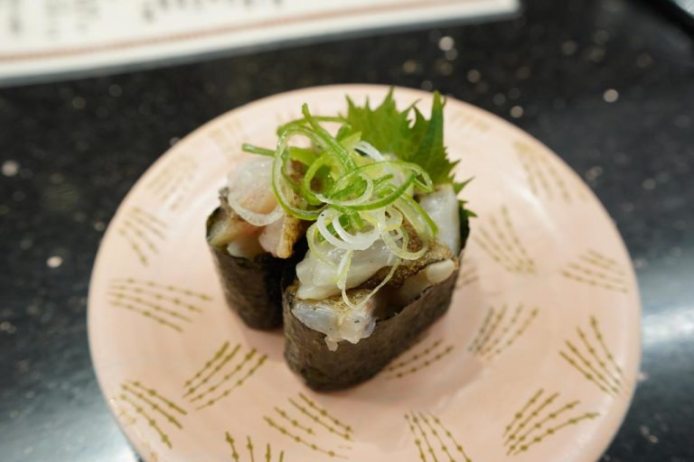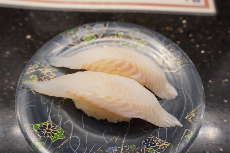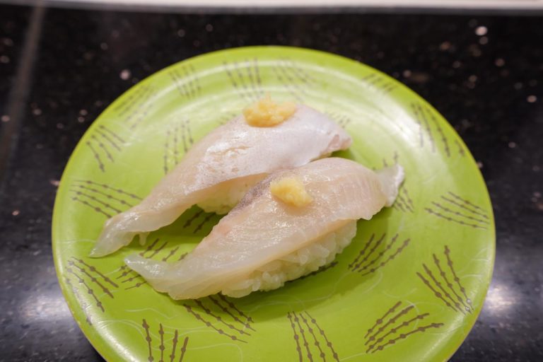 魚ネタで一番安い銀がれい(143円)です。脂が乗っているというよりはサッパリとした味が特徴。安いから毎回来ると1皿は食べたくなる。