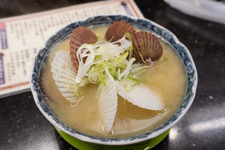 順番を考えずに頼んでしまったので、最後にホタテ汁(308円)が来ちゃいました。たっぷりのホタテが入っている割にお値段は控えめ。口直しにもちょうど良いかもしれません。