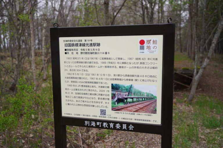 続いては「光進駅」です。ここは前に看板が立てられていて、当時の写真だったり記録が残されています。