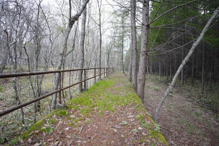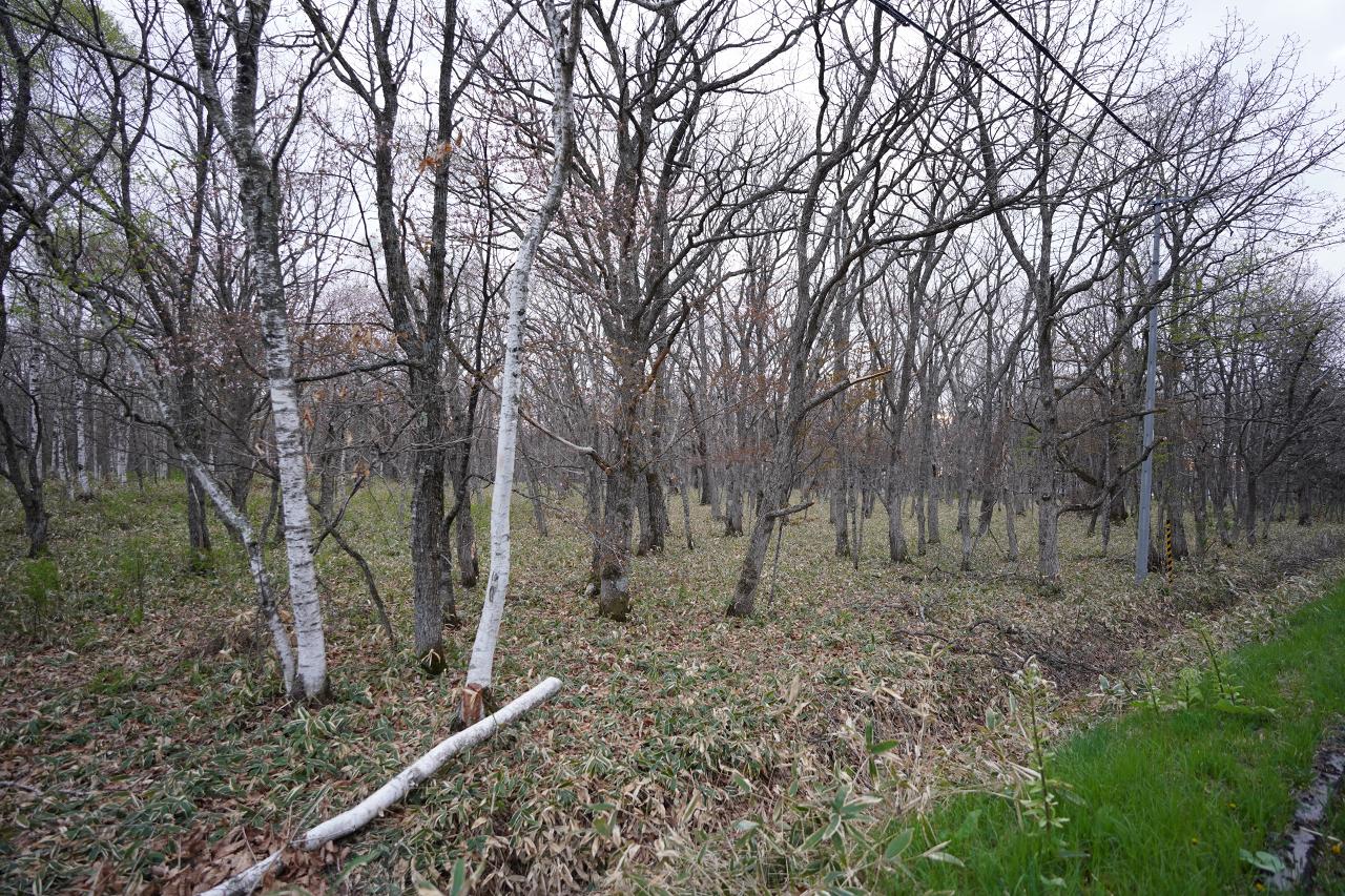 国鉄時代は「仮停留所」として、JRになって駅として昇格となった「開栄駅」の跡です。見ての通り森林になってしまっていて、当時の痕跡は何も残されていません。