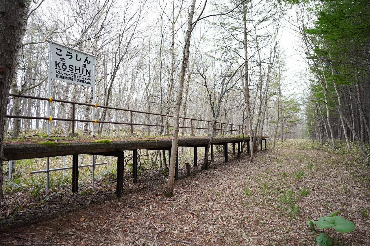 コンクリートと古レールで作られた簡易的なホーム。廃止後には撤去されることが多いようだけど、ここはそのまま残されているのは所有者が自治体だったとかなのかな。作りとしても先の光進駅と似ているし。