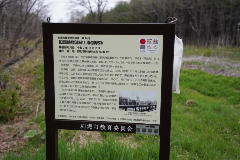 そしてこの西春別駅跡のある場所って住所が「西春別駅前」なんです。運行当時からこの町名だったようで、廃止になってもここは「駅前」であり、未来栄光「駅前」として残り続けます。でも知らない人からしたら「なんで駅前?」って思ってしまうかもしれない。