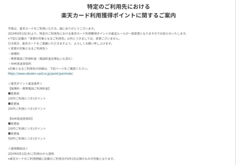 特定のご利用先における楽天カード利用獲得ポイントに関するご案内(楽天カード)