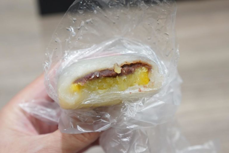さっきハンバーガーを食べたばかりだけど、熊本に来たら食べたいのがいきなり団子。モチモチとした生地の中にさつまいもとあんこの入ったお菓子で、蒸したてホクホクを味わえます。