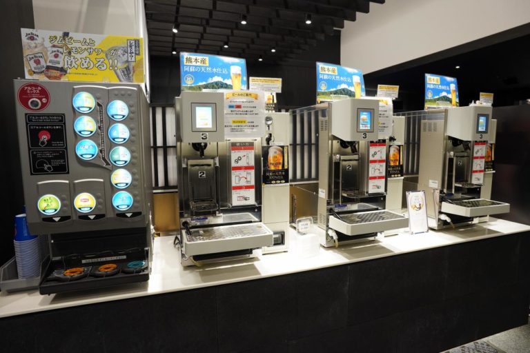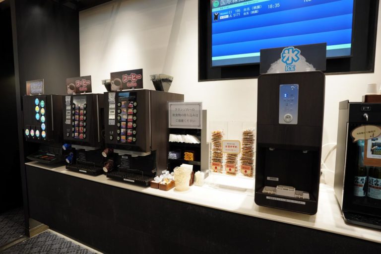 ビールサーバーとレモンサワーなどが飲めるアルコールコーナー。ビールこそカードラウンジでは1杯のみ無料だけど、レモンサワーは制限なく飲み放題。他にも地酒も飲めるんだけど、残念ながらお酒全く飲めないんよな。