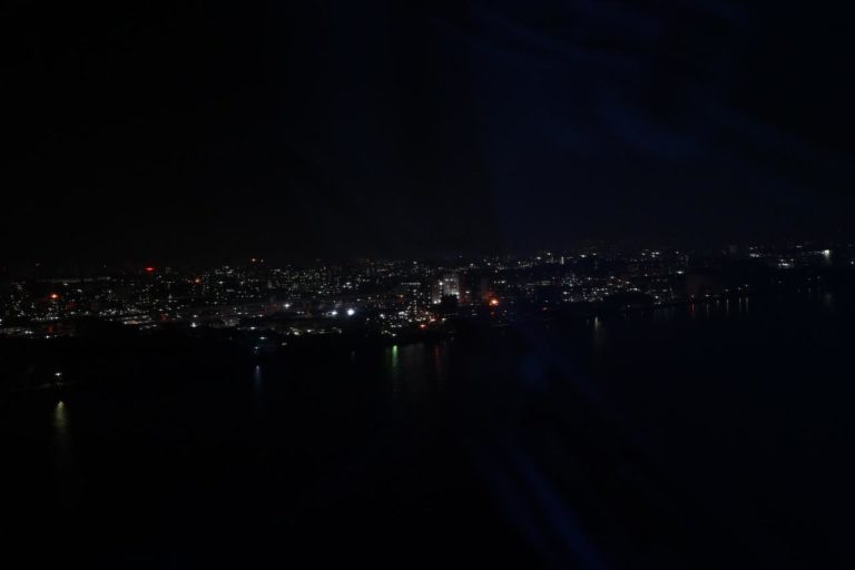 夕日が雲に当たって、幻想的な光景を眺めながらのフライト。でも良く考えたら19時なんですよね。日が伸びたなぁって実感できます。