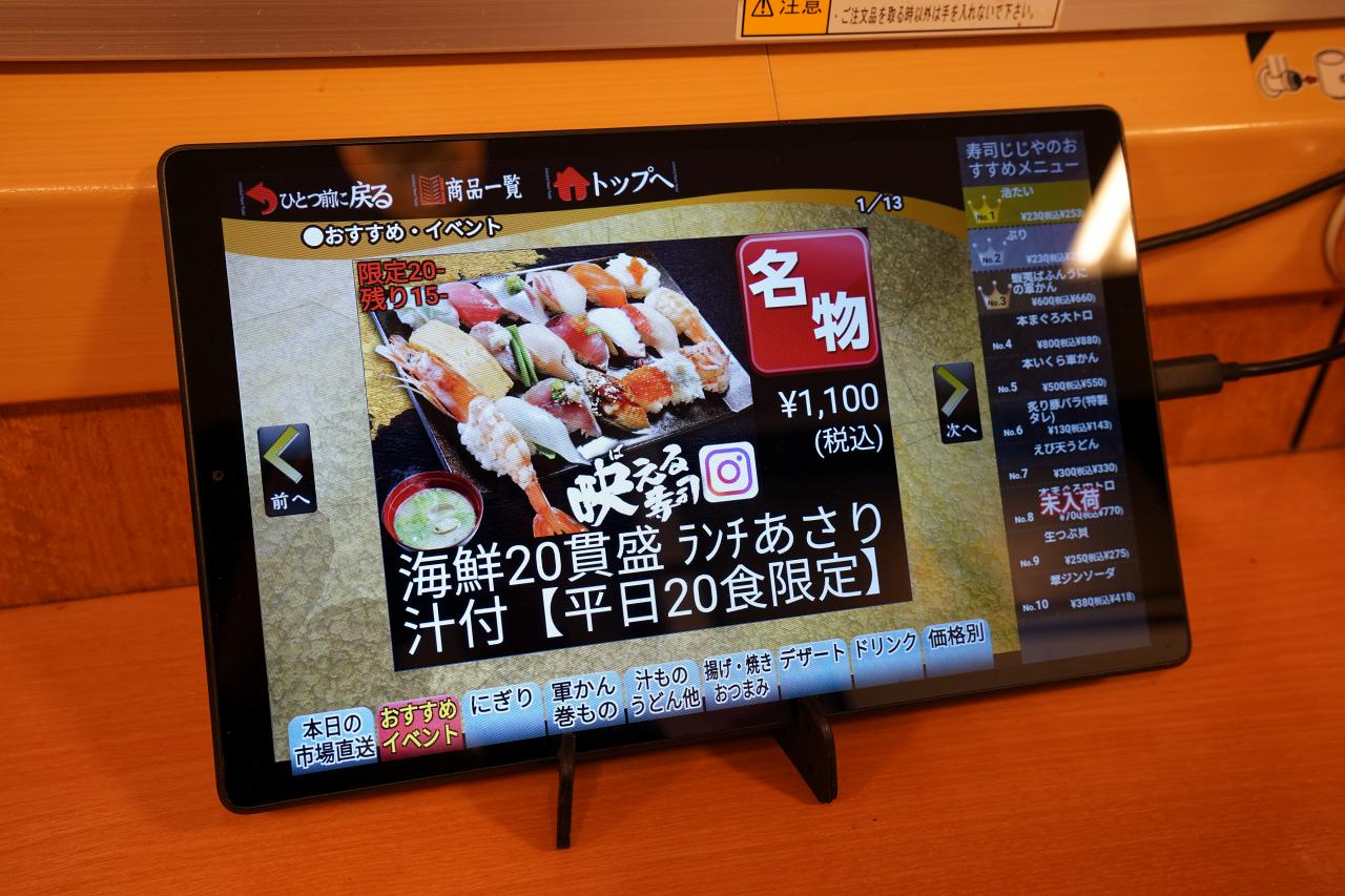 入店すると店内には10人ほどのお客さん。目的のお寿司は先着20個限定なので間に合いました。20貫のお寿司とあさり汁がセットになって1,100円という破格のお値段がびっくりのメニューです。