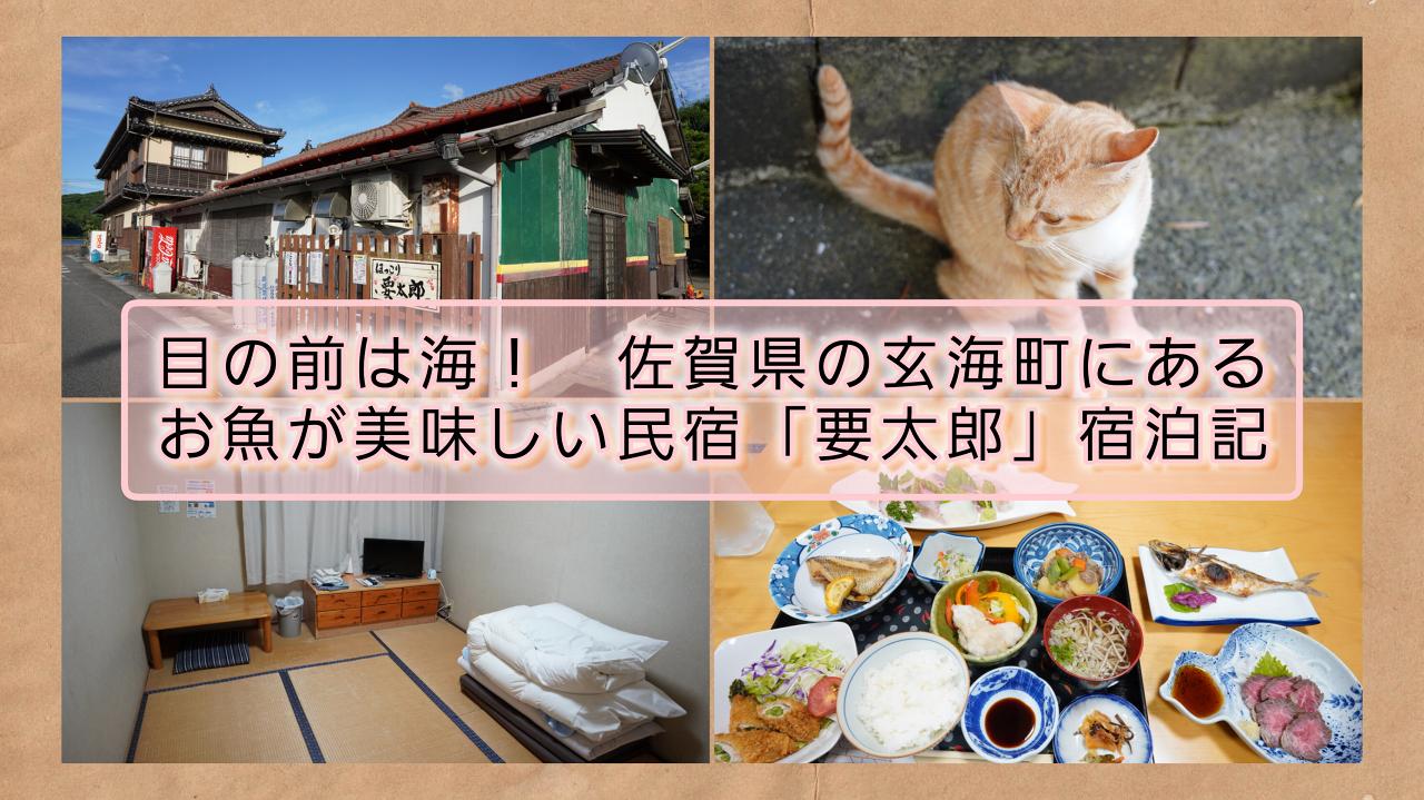 海の近くの民宿はお魚が美味しいという持論を元に、行ったことのなかった佐賀県の玄界灘周辺で見つけたのが「要太郎」という民宿。美味しい魚介類が堪能できるということで、食事を楽しみに宿泊してきました。今回はグレードアッププランで予約したけども、お魚好きな人はグレードアップをおすすめ。
