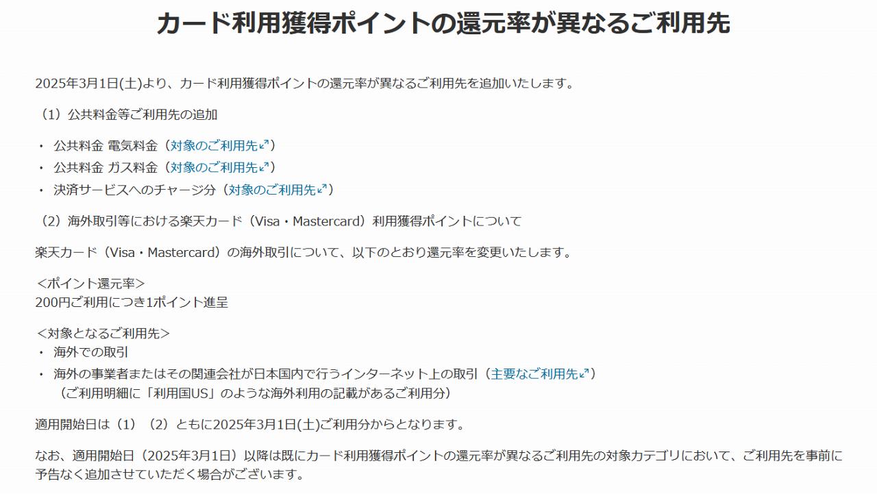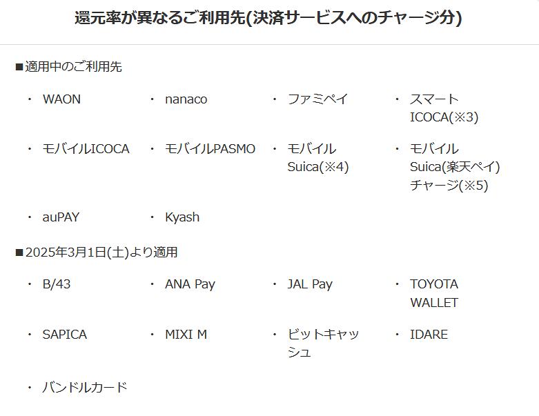 しかし2025年3月1日より、以下の利用先はポイント対象外に。残念ではありますが、予告されているだけマシという感じもあります。