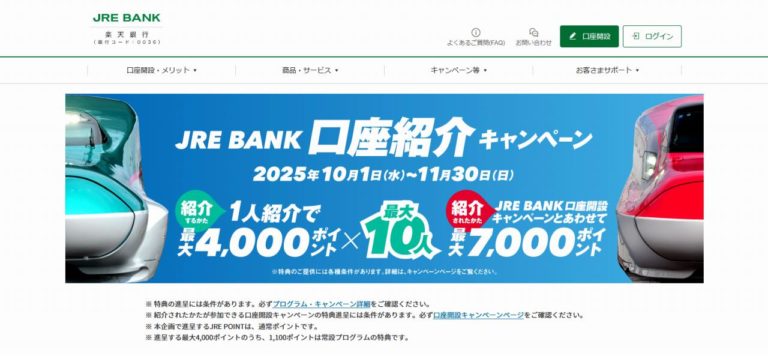JR東日本と楽天銀行が提携して提供している銀行サービス「JRE BANK」にて、新規口座開設に伴う紹介キャンペーンが実施されています。JR東日本エリアに住んでいる人であればメリットが大きい銀行口座なので、興味がある人はこのタイミングで開設してみては。