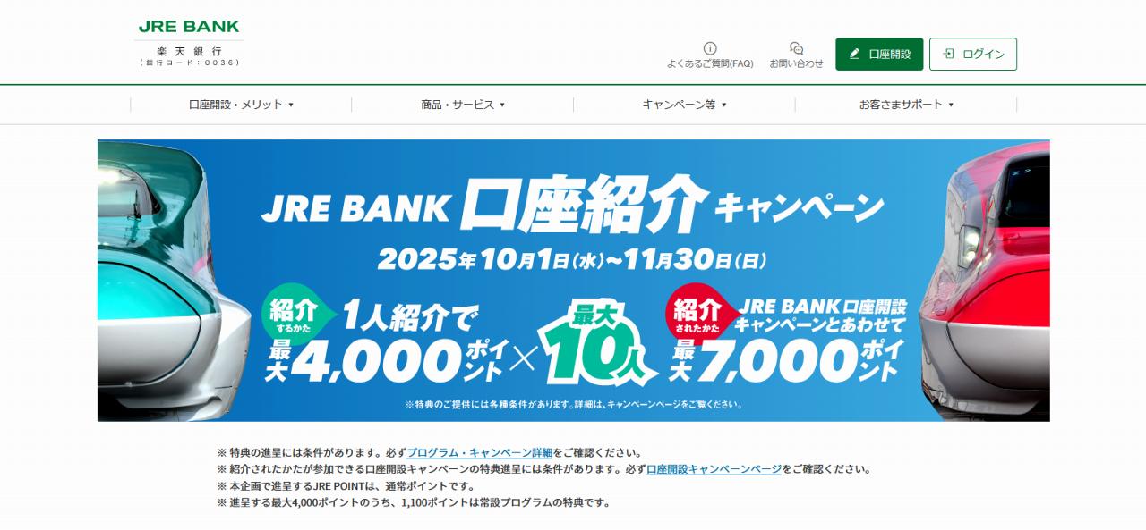 紹介する側はJRE POINTリンク登録と口座残高のみ