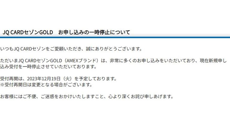 JQ CARDセゾンGOLDのAMEXブランドが発行停止に、インビテーションバーも消失