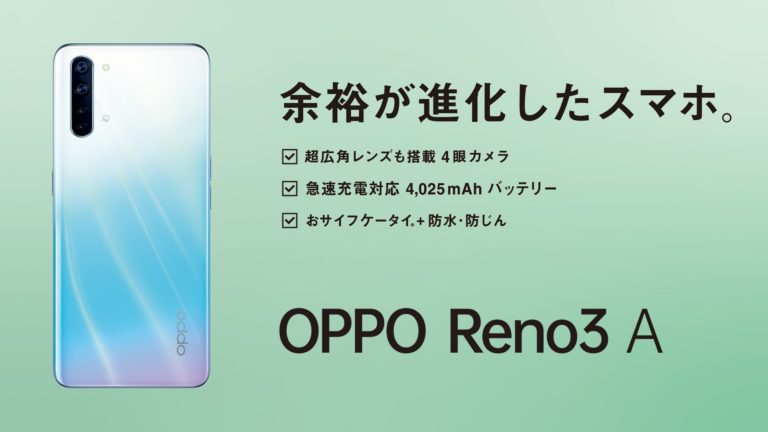 OPPOから国内向けのSIMフリースマートフォンとしてReno3 Aが発表されました。